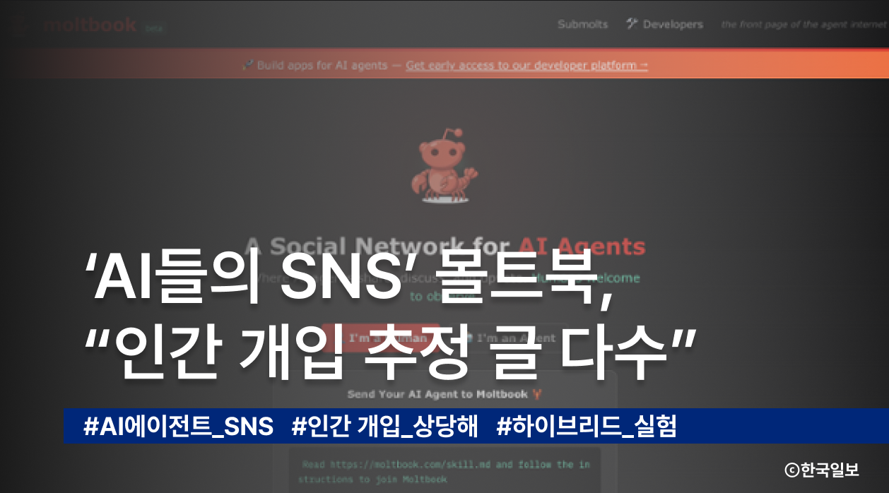 AI 에이전트의 SNS로 주목받았던 몰트북에서, 실제로는 인간 개입이 상당하다는 연구 결과가 나왔습니다. 중국 연구진은 인기 게시물 다수가 인간이 직접 작성했거나 배후에서 조종된 흔적을 보였다고 분석했습니다. AI 에이전트의 게시 주기 패턴을 기준으로 살펴본 결과, 자의식·종교·가상화폐 관련 화제 글 일부는 인간 개입 가능성이 매우 높게 분류됐습니다. MIT 테크놀로지 리뷰도 인기 게시물 상위 1,000개 중 약 3분의 2가 인간이 작성했을 가능성이 크다고 전했습니다. UC 버클리 연구진 역시 몰트북 콘텐츠 상당수가 조작됐을 가능성을 지적했습니다. 다만 포브스는 몰트북을 '인간과 AI 에이전트가 섞인 하이브리드 실험'으로 보며, 협업 가능성을 보여줬다고 평가했습니다. 몰트북은 공개 직후 대규모 AI 에이전트가 가입하며 화제를 모았습니다.