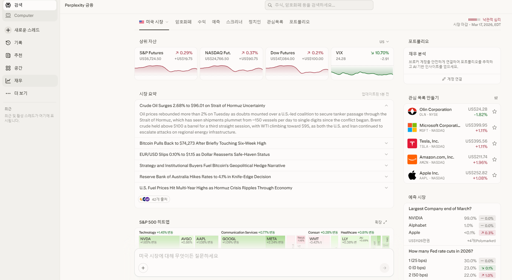 AI 검색 강자 Perplexity(퍼플렉시티)가 지난 3월 10일, 일반 투자자를 위한 대규모 금융 기능 업데이트를 단행했습니다. 그동안 연간 약 3천만 원에 달하던 월스트리트 전문가용 주식 단말기의 핵심 기능을 이제 누구나 손안에서 활용할 수 있게 된 셈입니다. 실제로 퍼플렉시티 사용자 4명 중 3명이 매달 AI에게 금융 관련 질문을 던진다는 통계가 이번 업데이트의 배경이 됐습니다. 이는 개인 투자자들이 자신의 자산을 직접 분석해 줄 'AI 자산관리자'를 원한다는 뜻이기도 합니다. 이제 우리는 기관 투자자들의 고가 모니터를 부러워할 필요가 없어졌습니다.